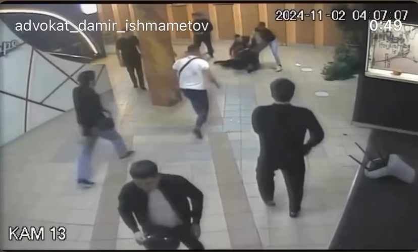 «Смотрите, он просто сидел при входе, как и положено по инструкции. Он проверял у посетителей наличие колюще-режущих предметов. И только потом, как толпа нападает, Әмірбек включается в драку. То есть ровно после того, как увидел, что несколько человек избивают его коллегу», — эмоционально говорит супруга Әмірбека Зарина Мансур, показывая видео.