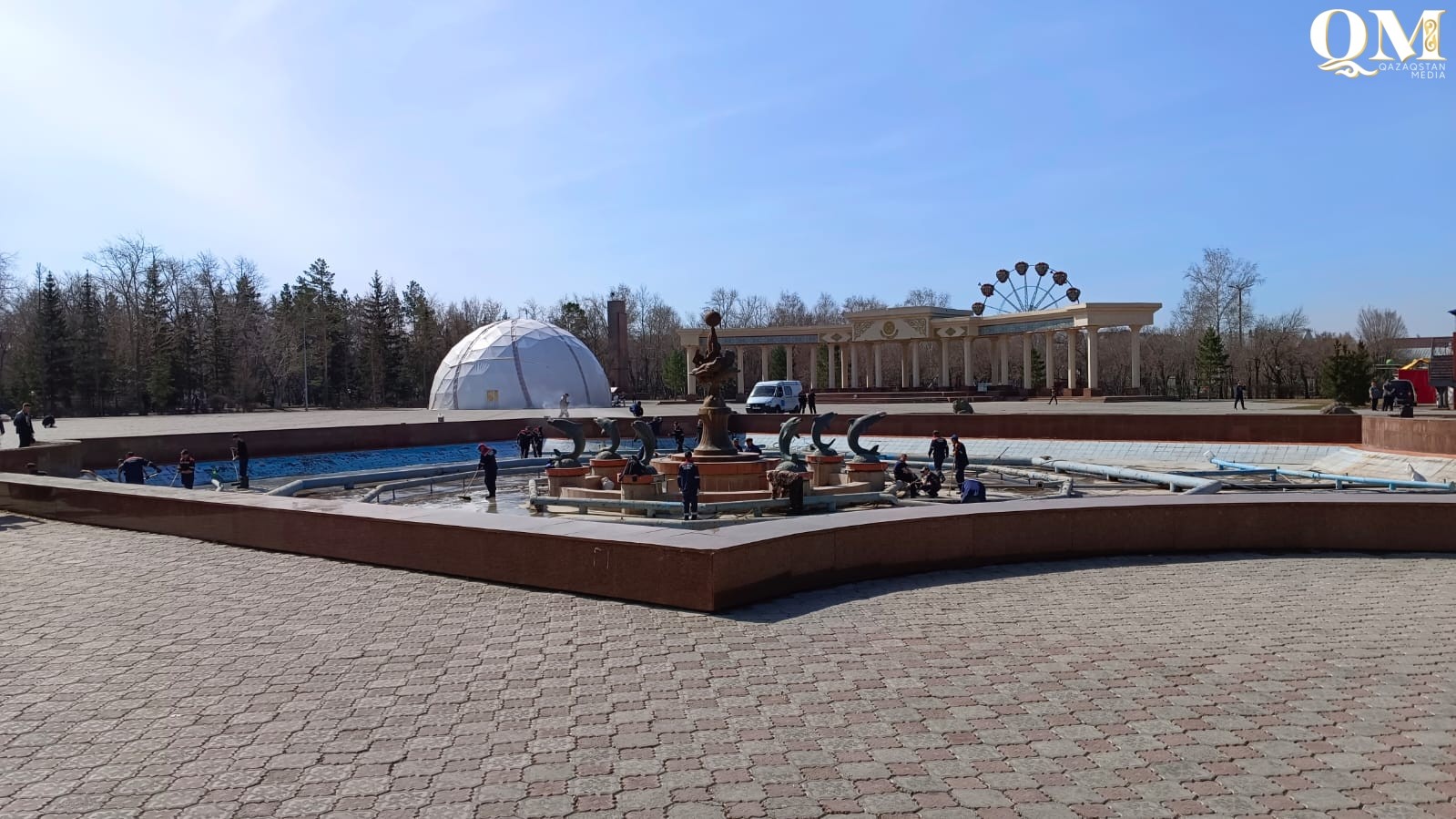 По сообщению пресс-службы городского акимата, сейчас ведутся работы по очистке и подготовке фонтанов к запуску.