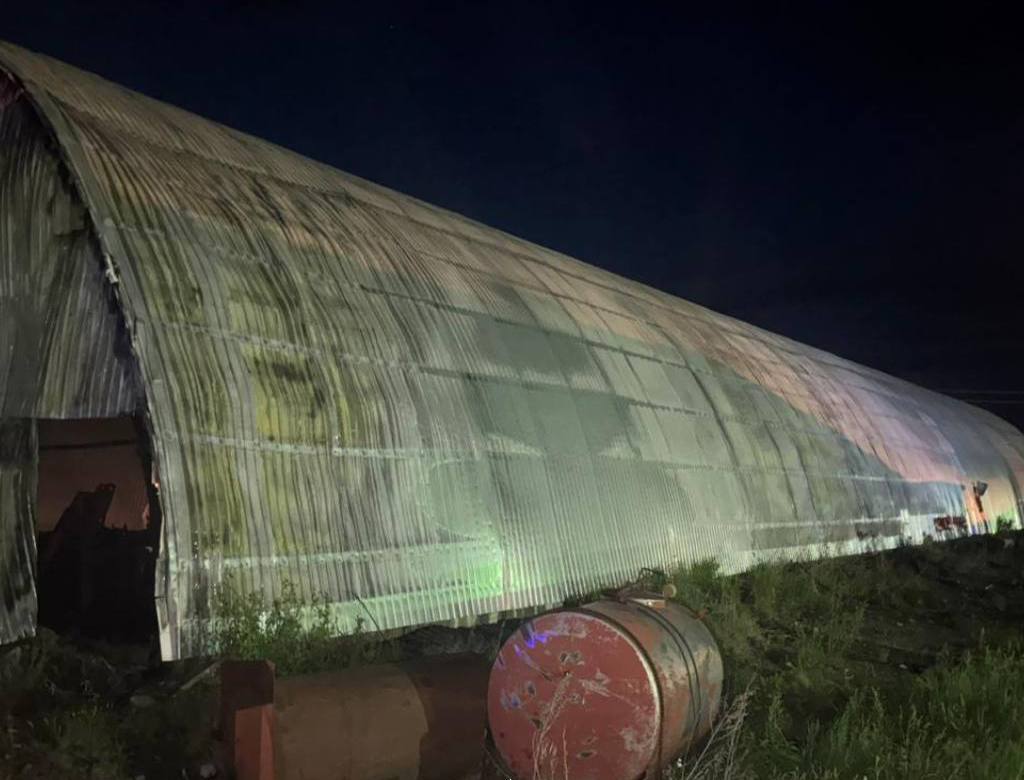 Происшествие случилось поздно вечером второго июня на территории одного из крестьянских хозяйств. Загорелся металлический ангар, где хранили технику. Пламя быстро распространилось, повредило деревянные балки и стропила строения.