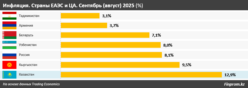 По уровню инфляции Казахстан опережает соседей по ЕАЭС: