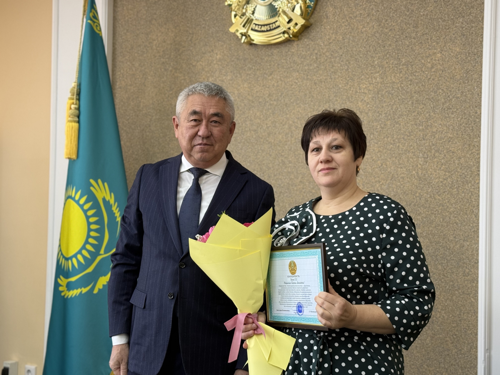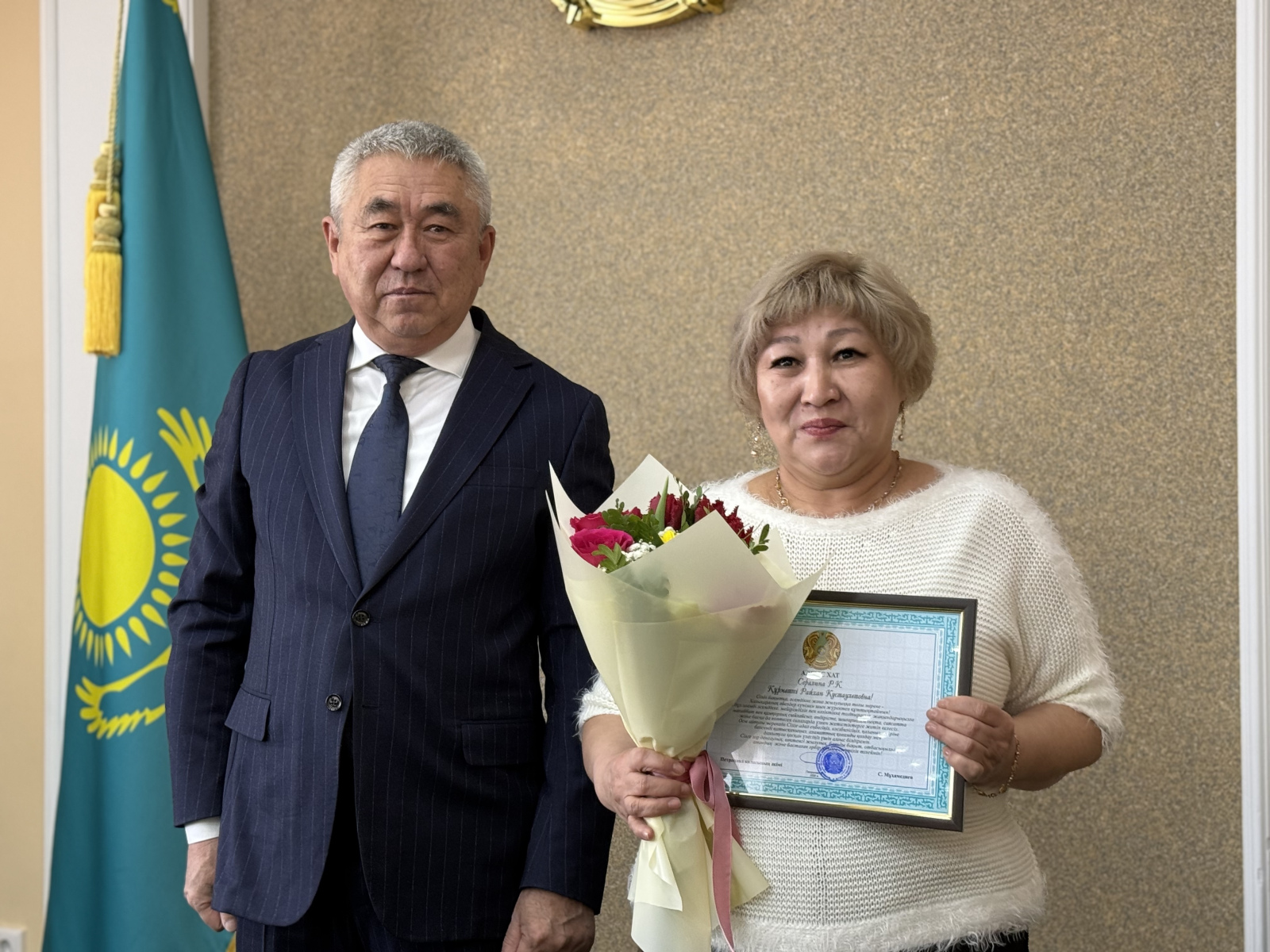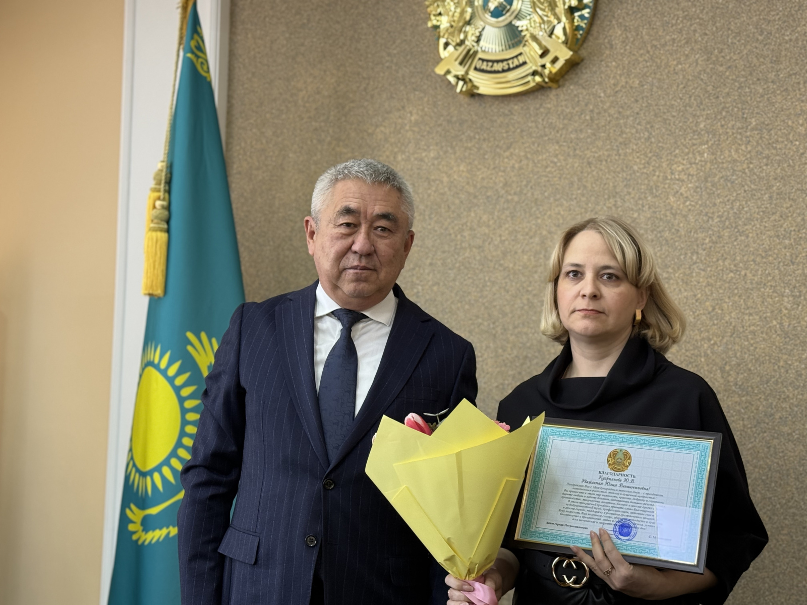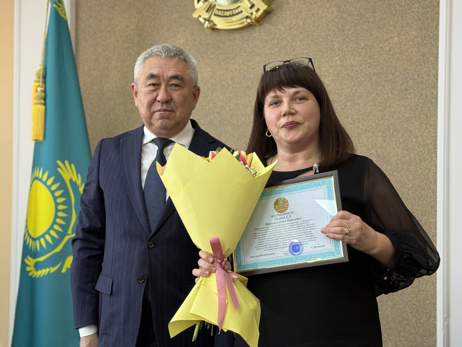 Директору Петропавловского центра социальной адаптации Айгуль Ахметовой и старшей медицинской сестре ревматологического отделения областного кардиологического центра Татьяне Гришиной градоначальник вручил почетную грамоту и благодарственное письмо от акима области.