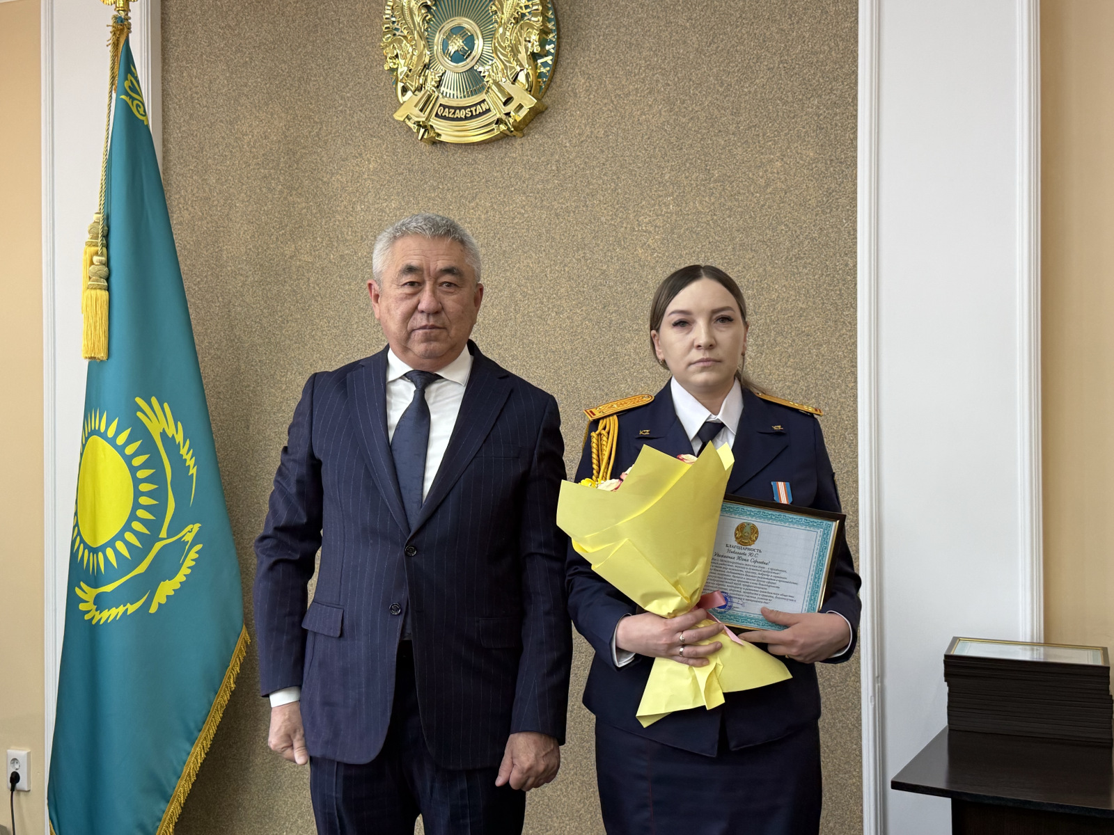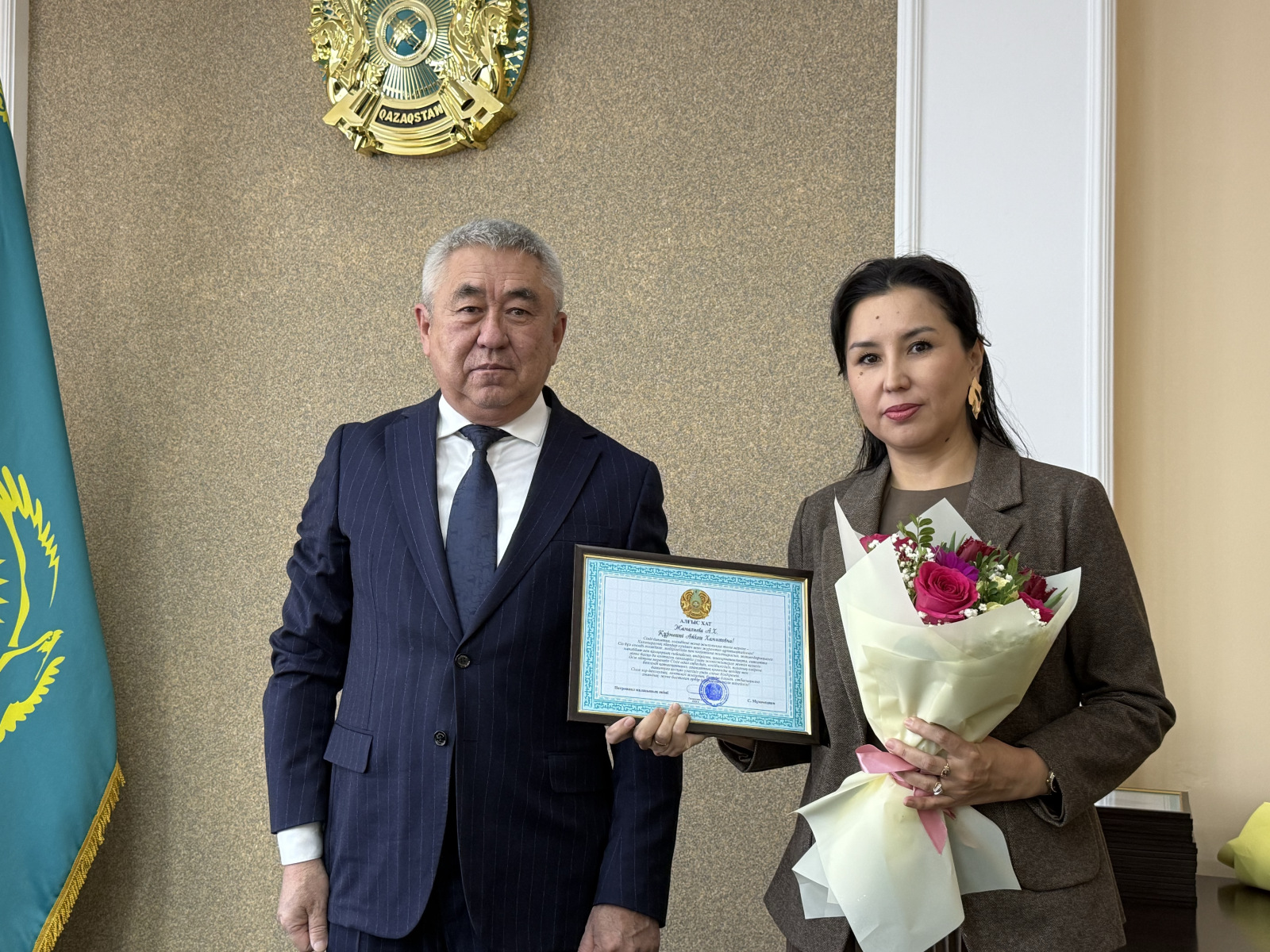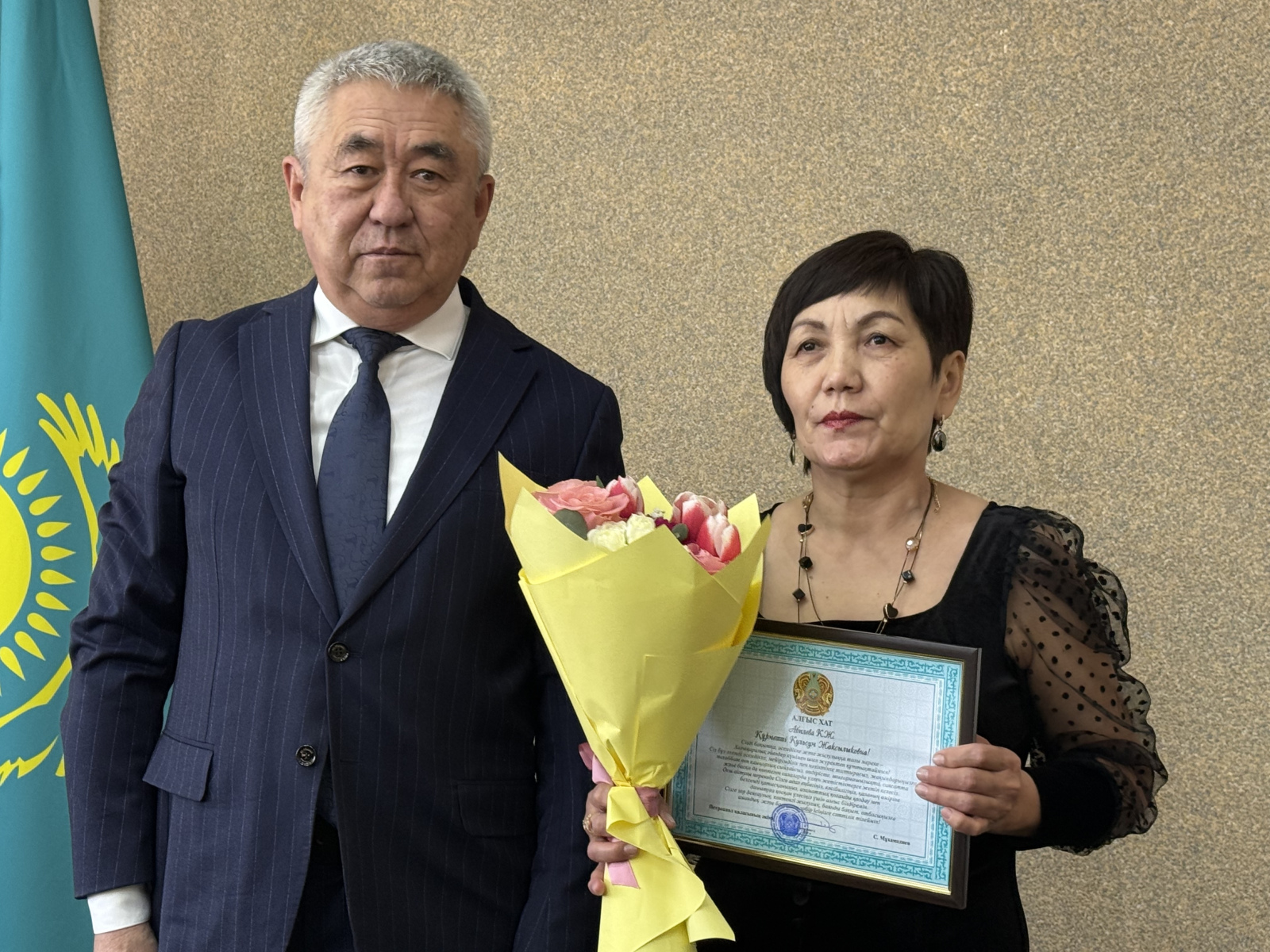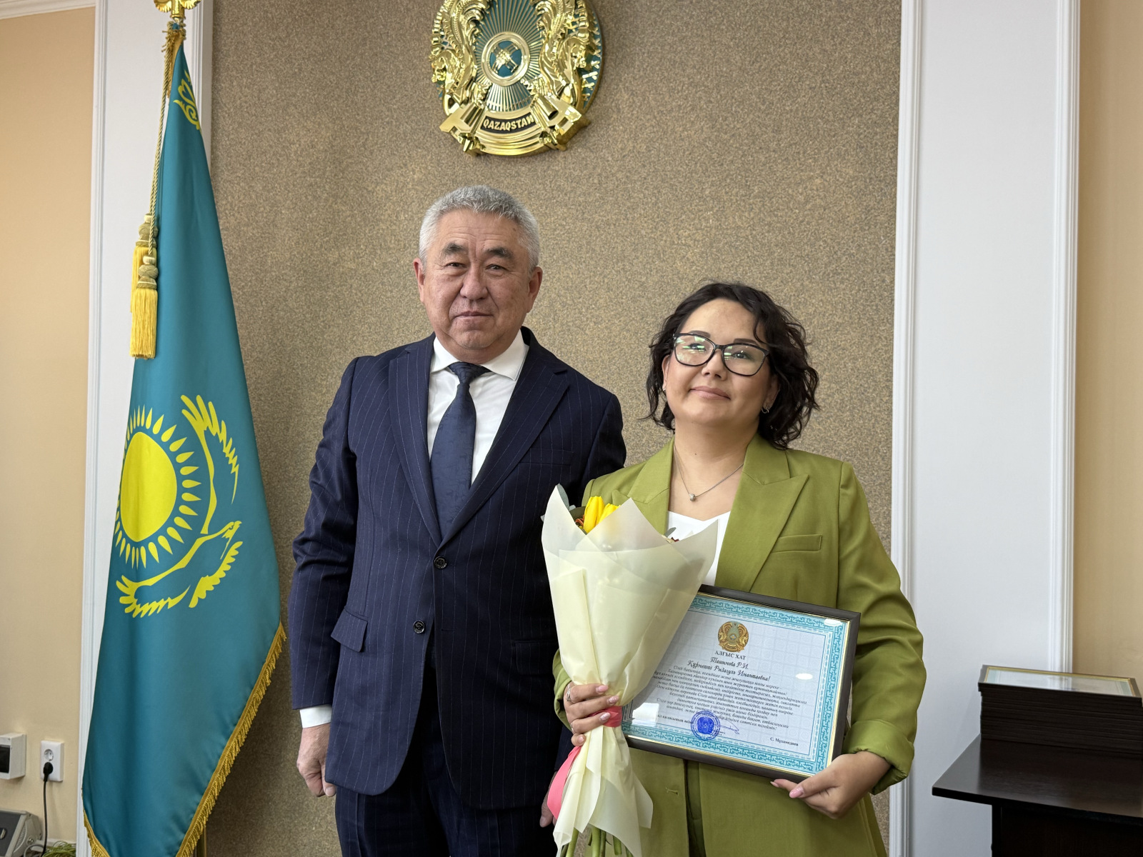 Директору Петропавловского центра социальной адаптации Айгуль Ахметовой и старшей медицинской сестре ревматологического отделения областного кардиологического центра Татьяне Гришиной градоначальник вручил почетную грамоту и благодарственное письмо от акима области.